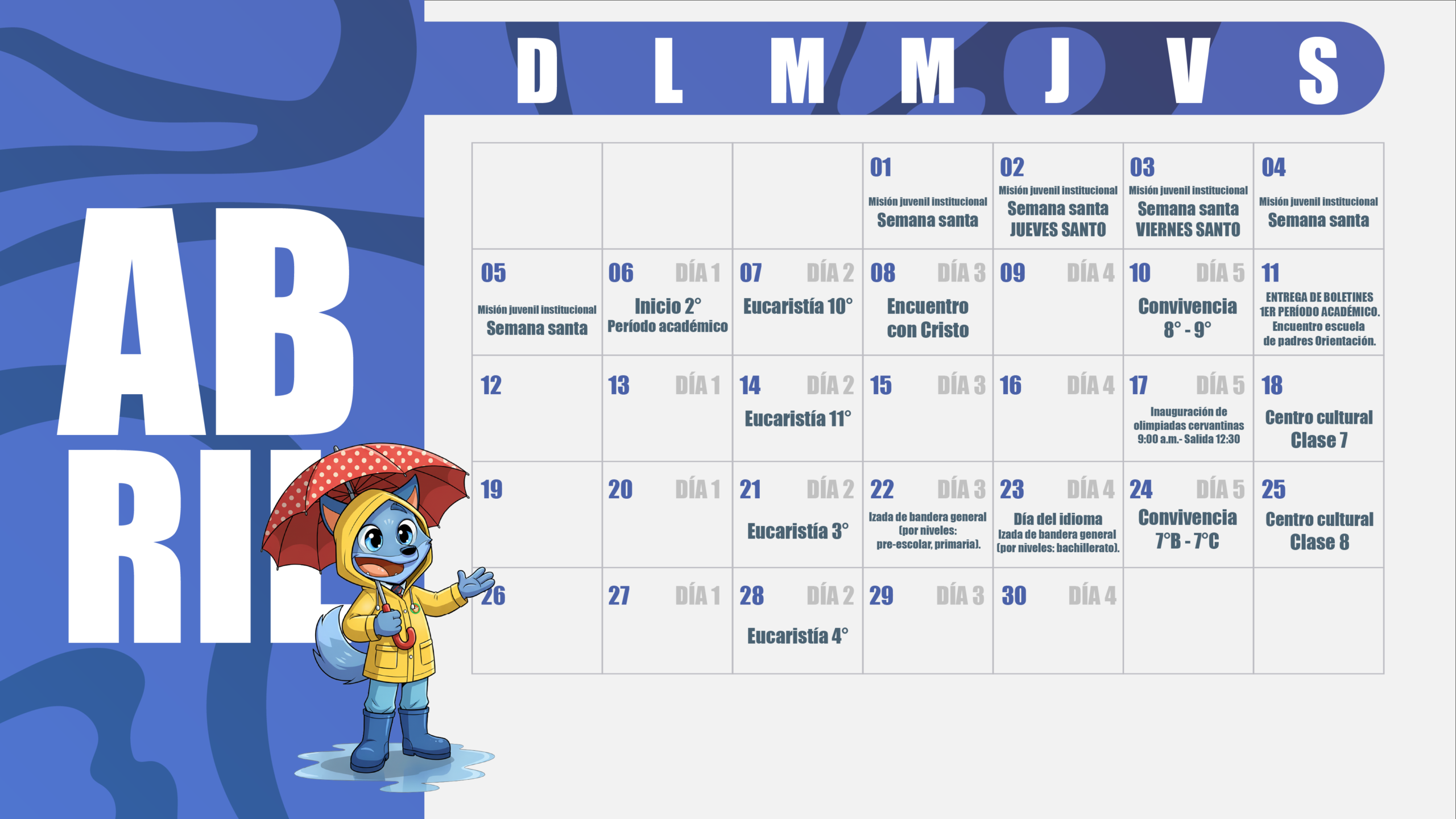 Calendarización 2026 inicio enero febrero marzo abril mayo junio julio agosto septiembre octubre noviembre diciembre